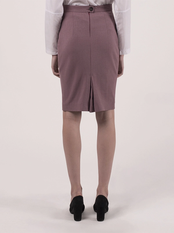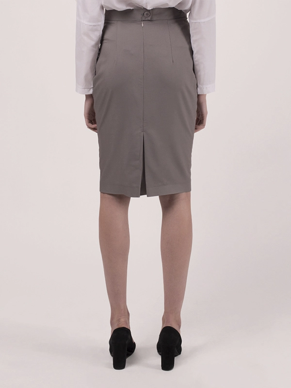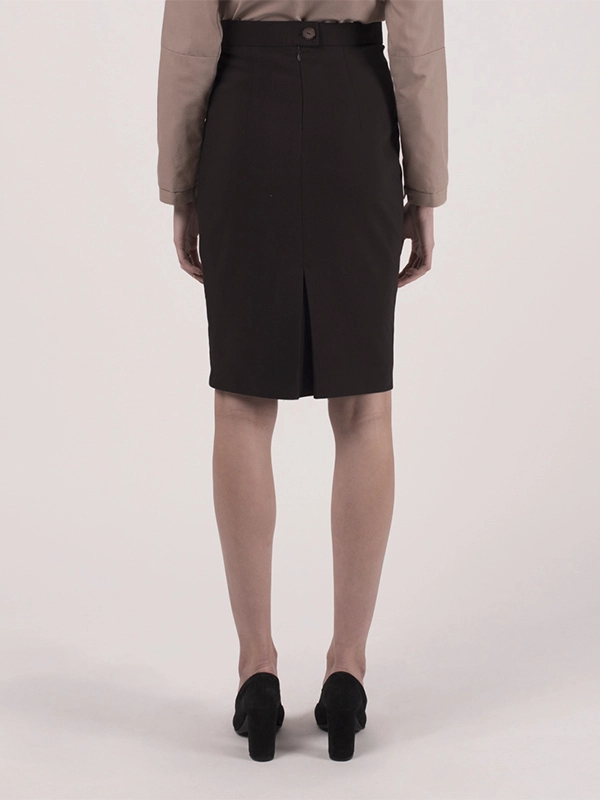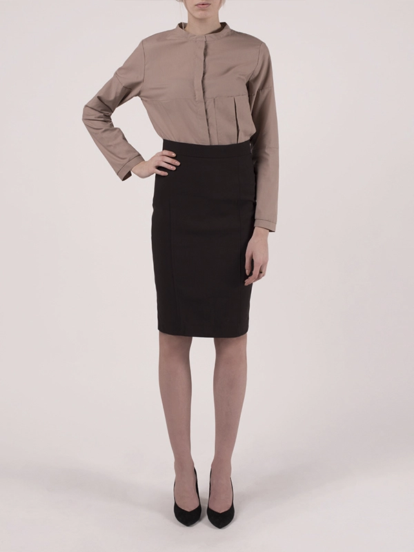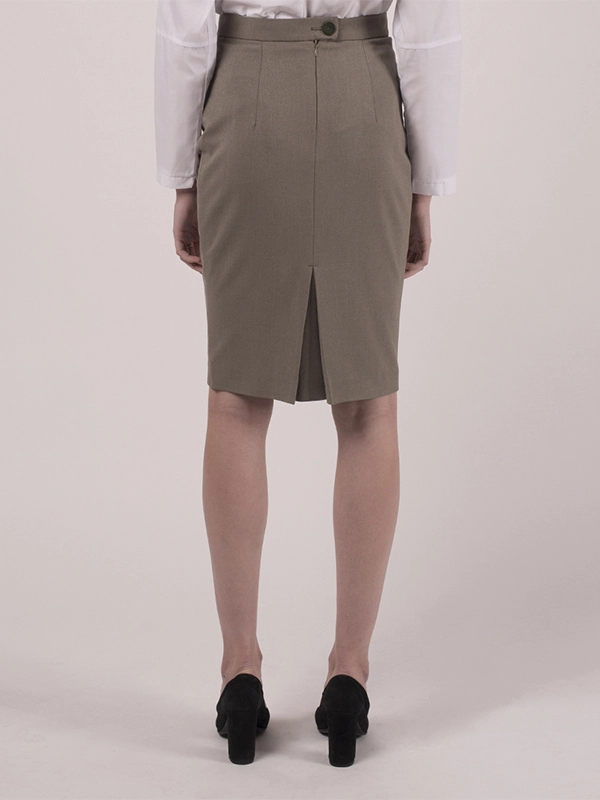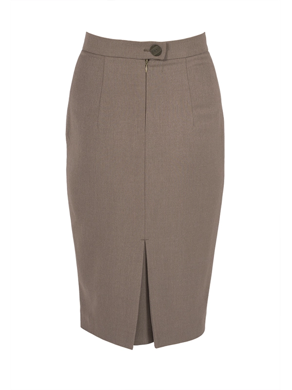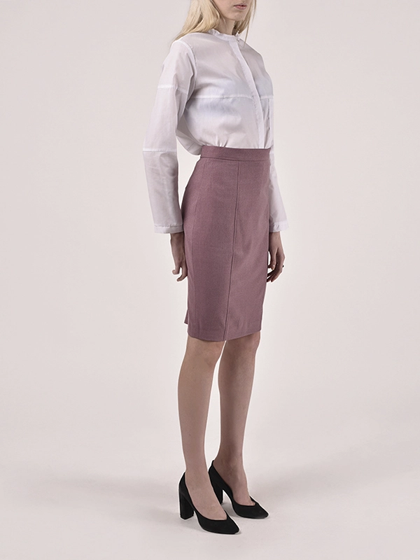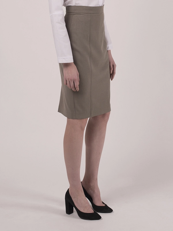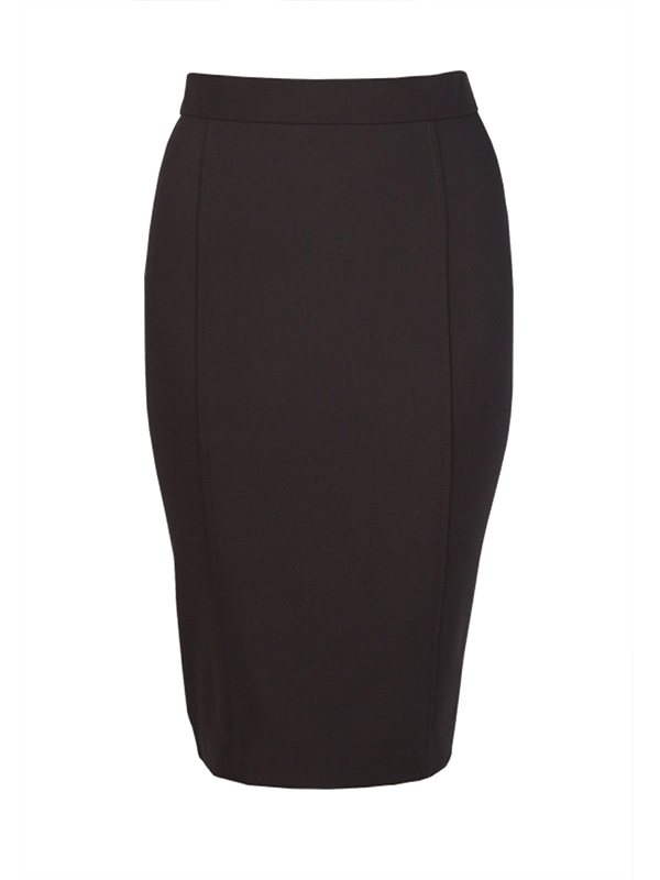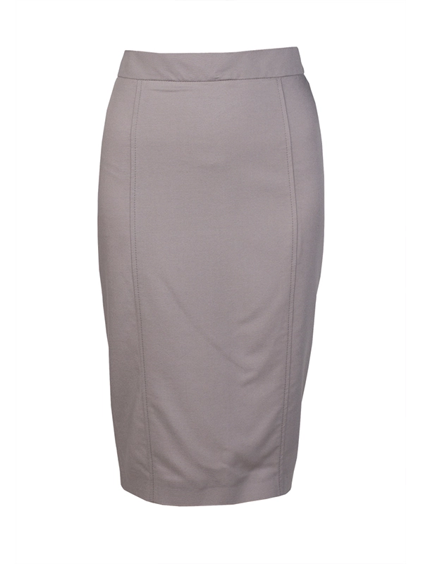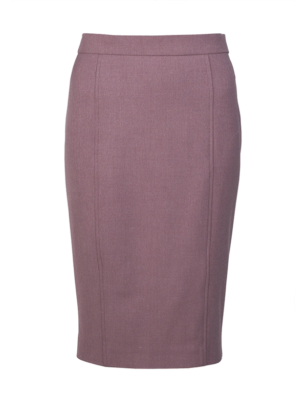 Классическая юбка карандаш. Спереди с двумя рельефными швами. Сзади широкая складка. Длина ниже колена.
