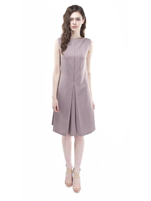 8. Элегантное строгое платье цвета капучино. Спереди по центру шов, от пояса вставка ткани - складка. Горловина - лодочка. Сзади - замочек. Ткань - костюмная, средней плотности