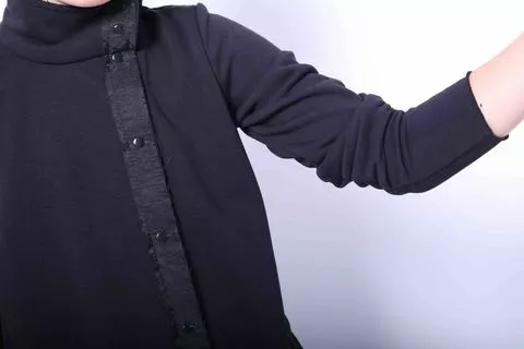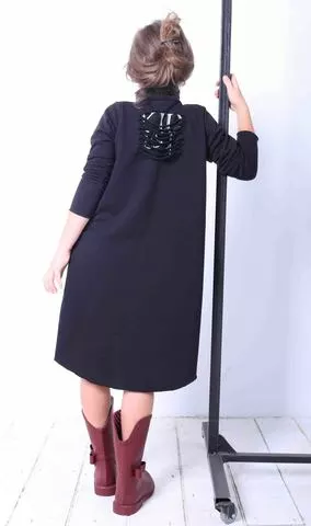 ПЛАТЬЕ ТРАПЕЦИЯ С ГОРЛЫШКОМ, НА КНОПОЧКАХ, ЧЕРНОЕ С НАЧЕСОМ